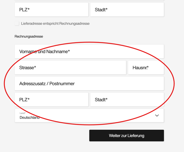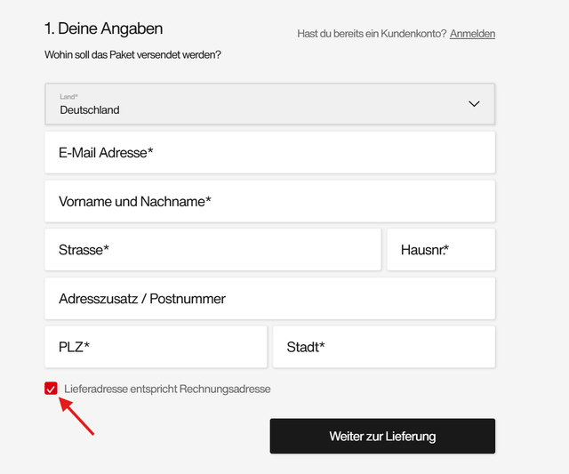 Die Lieferadresse kann von der Rechnungsadresse abweichen.