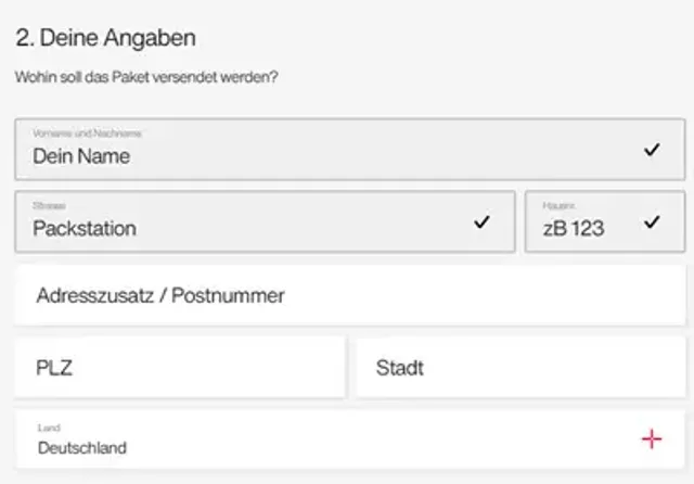 Bitte gebe deine Packstationsadresse wie folgt im Checkout im Schritt 2. unter "Versand" an: