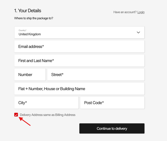 At the check-out page, in the second step with "Your Details", please untick the box dedicated "Delivery Address same as Billing Address". After unticking the box, the billing address section will appear.