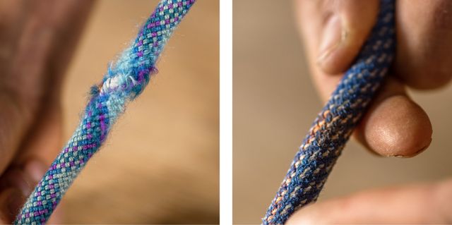 Ropes should be checked regularly before use. The best way to do this is to pull the entire rope through your hand, feeling and looking for signs of wear, such as: