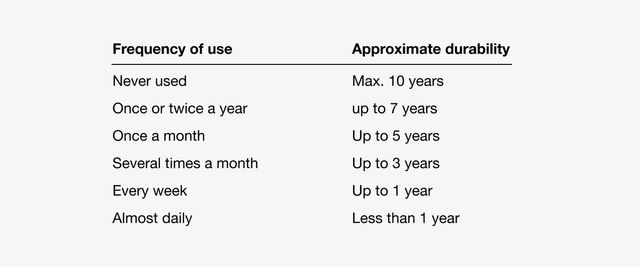 1.1 Lifespan based on frequency of use