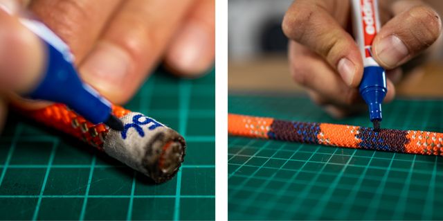Finally, measure your rope and mark using your Edding 3000 pen the middle point of the rope, as well as writing on the tape where you made the cut the new length. We recommend Edding 3000 as it has been tested to last while not compromising your rope in any way.