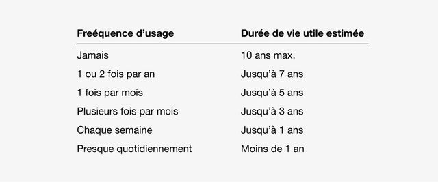 1.1 Calculez la durée de vie de votre corde en fonction de sa fréquence d’utilisation