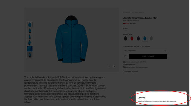 Parfois, il peut y avoir des chevauchements avec des articles uniques : par exemple, si nous recevons un retour, l’article réapparaîtra comme disponible. Toutes les personnes ayant cliqué sur le bouton de notification seront informées. Il se peut toutefois que quelqu’un d’autre ait été un peu plus rapide pour commander, et au moment où tu vois l’e-mail de notification, l’article ne soit déjà plus disponible.